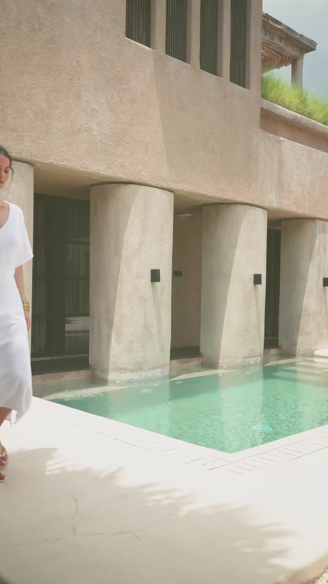 The Bella Cotton Dress in crisp white is made from airy cotton muslin, featuring handy side pockets and a tie-back to hug your waist just right. Its hand-stitched V-neck adds a charming touch, while the midi length and sleeves gracefully cover your upper arms. Side splits bring a breezy, elegant flow to every step you take.