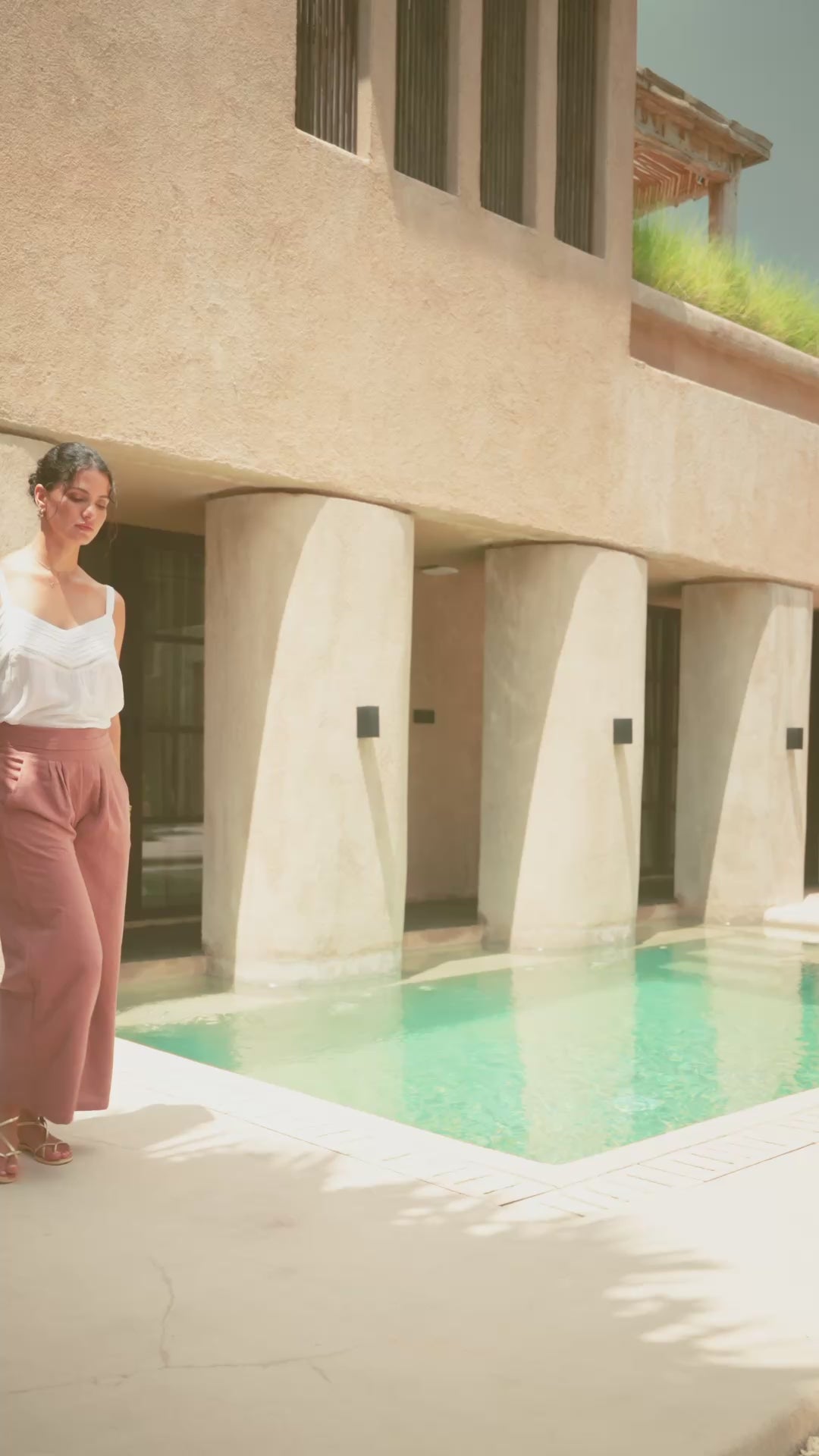 The Coco pants in dusty pink bring together a soft cotton-linen blend with a stylish pleated front waistband and a shirred elastic back that keeps you comfy when on the move. With a relaxed billowy leg and lightweight, textured fabric, they’re made to flatter without holding you back. Ideal for everyday wear during spring and summer. Complete the look with the Celia Camisole and Capri shimmering gold sandals.